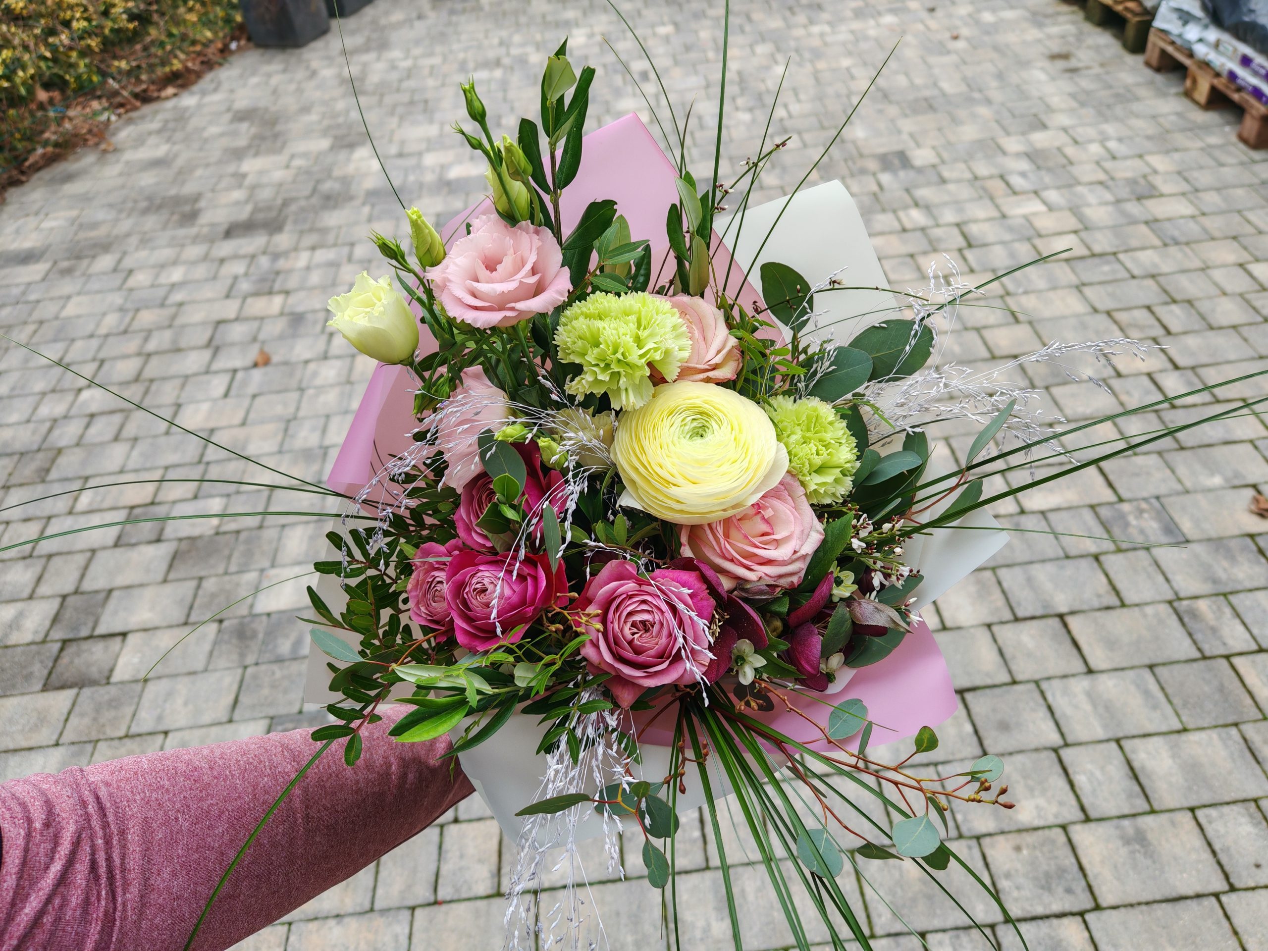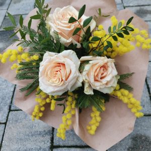 Slika šopka je simbolična, saj je vsak šopek unikat in ročno izdelan.. Zaradi lastnega uvoza, je cvetje sveže.